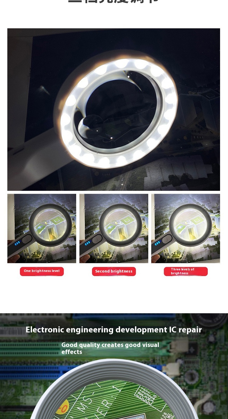 Reading USB Charging 30 Times LED Light Identification Repair Magnifying Glass